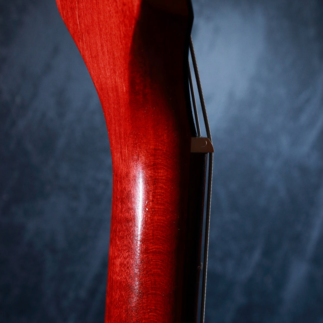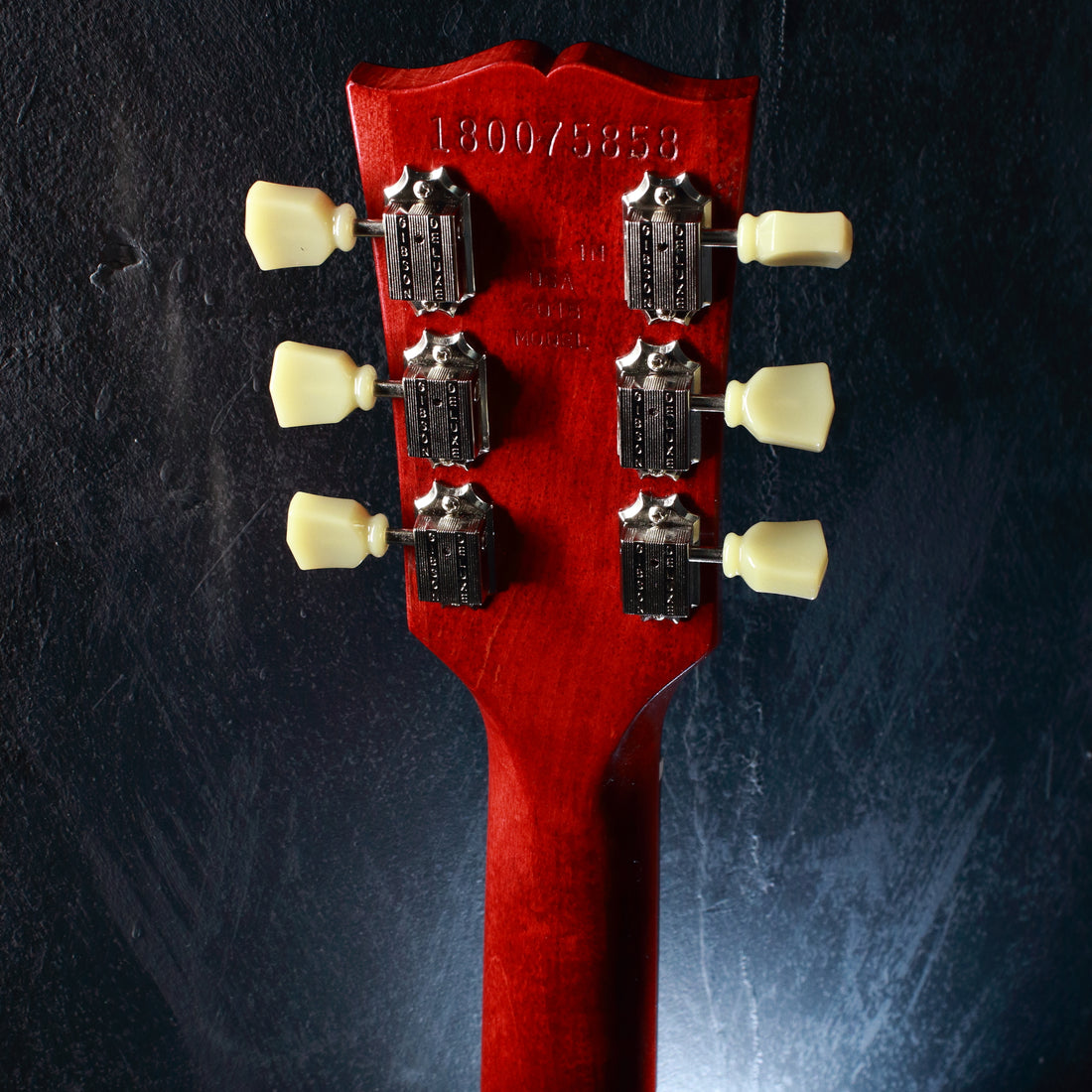 Cosmetic condition notes: minor finish wear. The headstock has some minor dimples on the end. The neck is clean and smooth in the hands, minor dimples and rub-wear on the back only. The back has some rub wear in the middle, some scuffs and minor dimples along the top edge from the horn to the elbow area, plus a few dimples in teh bottom corner and bottom horn; no major marks. The sides have minor rub wear around the whole body, as well as some dimples on the top horn, a few surface scratches near the jack and some scuffs on the bottom horn. The front has some dimples near the knobs, rub wear and dimples in the elbow area and some standard play wear on the guard and horns. Overall: very good condition (8/10).