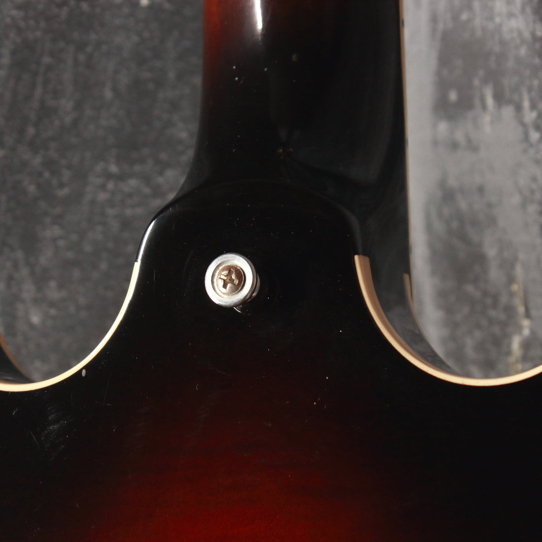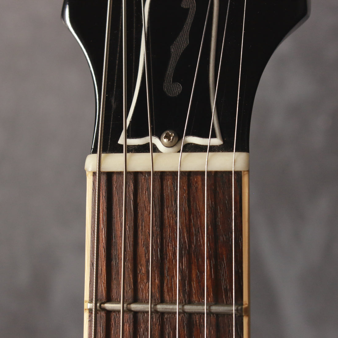 Cosmetic Condition Notes -- Minor finish wear. The headstock is pretty clean, no major marks. The neck is clean and smooth in the hands, minor rub wear and very minor dimples on the back only. The back has a couple of very light scuffs in the middle of the body, some dimples in the elbow area and and some light circular scuffs around the front strap pin. The sides have some minor dimples on the top horn and some light rub wear in the elbow area and near the knobs. The front has some light rub wear in the elbow area and some light play wear on the guard and horns, nothing nasty. Most noticeable mark is a light scratch near the left f-hole.